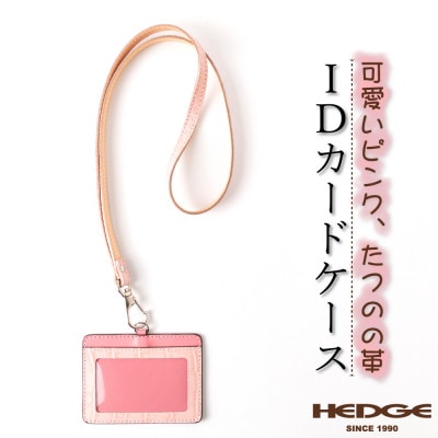 可愛いピンクのIDカードケース 兵庫県たつの市産牛革 ネックストラップ付き 革製品のHEDGE