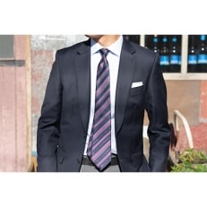 匠の技術で織り上げるシルク100%のオルタネイドストライプネクタイ(ネイビー×パープル)