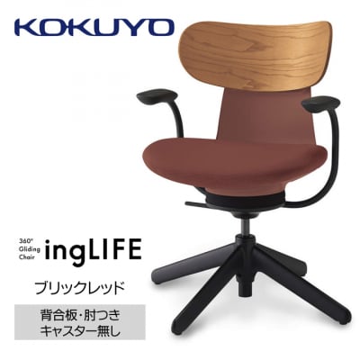 コクヨチェアー イングライフ ブリックレッド/背合板タイプ/肘つき/キャスター無し