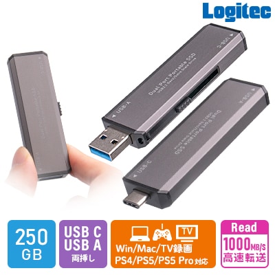 ロジテック ポータブルSSD 250GB 高速 外付け SSD type-C type-A 両対応 USB3.2 Gen2 typeC 読込速度1000MB/秒 PS5 / PS5 Pro / PS4 動作確認済 スティック USBメモリサイズ 【LMD-SPCH025UAC】