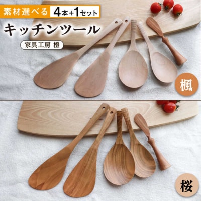 あると嬉しいキッチンツール 4本+1セット【素材選べる】糸島/家具工房 橙 [AZF010]