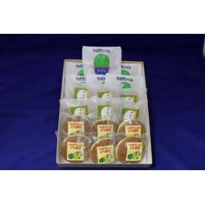 かわいらしいサボテンを模したサブレ【サボテンくん】、もっちりとした口あたりの皮の【サボテンのどら焼き】、うぐいすあんをパイ生地で包んだ【サボテンパイ】の詰合せです。 原材料の仕入れから調理、加工、梱包まで春日井市で行っています。