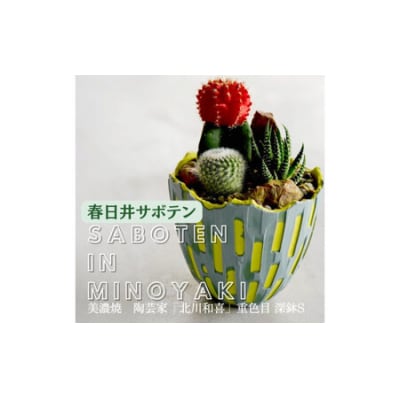 多治見市×春日井市【美濃焼】陶芸家「北川和喜」重色目深鉢S×【サボテン】春日井市の名店 後藤サボテン