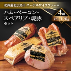【簡易包装】 エーデルワイスファーム ハム・ベーコン・スペアリブ・焼豚〈4種1120g〉o-1-k