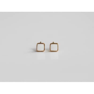北本市内の荒川を望む田畑や木々の多い土地にアトリエを構え、日々制作しています。 小さなゴールドのピアス。鮮やかな七宝が耳元で上品に輝きます。 こちらは、ホワイト(四角)のページです。