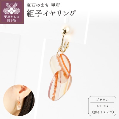 K10 イエローゴールド使用 天然石の組子イヤリング【ブラウン】