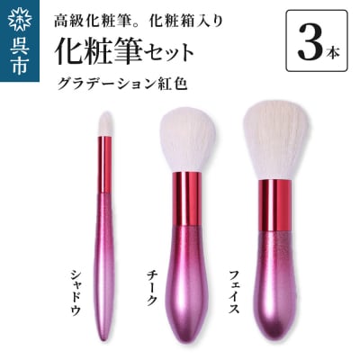 高級化粧筆 古羊毛 花 グラデーション 紅色 3本セット (フェイス/チーク/シャドウ)