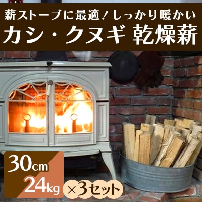 薪ストーブにおすすめ!「カシ・クヌギ」乾燥薪(30cm)24kg×3セット[002-003]