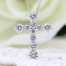 記念日の贈り物に◎ スウィートテンダイヤモンドの十字架モチーフペンダント(ネックレスチェーン付き)
