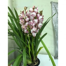 南アルプス市育ちのシンビジウム直立4本立て「ピンク系・イエロー系」のどちらか1鉢をお届けいたします。