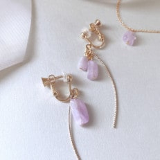 Agaroハンドメイド誕生石のイヤリング&ネックレス(クンツァイト) おまかせデザイン2点SET