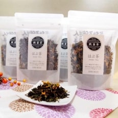 栽培期間中農薬不使用!ノンカフェイン!4袋の茶葉セットです。職人こだわりの鉄釜で炒っています