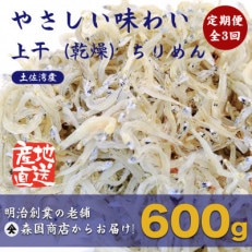 【毎月定期便】上干(乾燥)ちりめんじゃこ 高知県 土佐湾産600g(300gx2袋)鮮度抜群!全3回