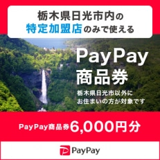 栃木県日光市 PayPay商品券(6,000円分)※地域内の一部の加盟店のみで利用可