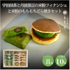 宇治抹茶と丹波黒豆の米粉フィナンシェ8個と米粉のもちもちどら焼き(抹茶きな粉餡)10個