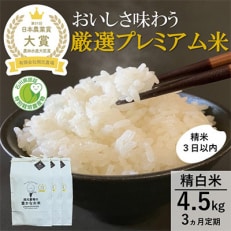 【毎月定期便】【日本農業賞大賞】厳選プレミアム米4.5kg精白米(特別栽培米コシヒカリ)全3回