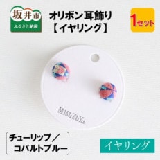 越前織工場がつくるオリボン耳飾り「イヤリング」 チューリップ/コバルトブルー [A-3312]