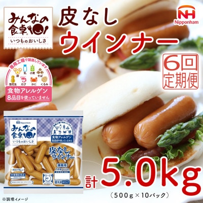 【毎月定期便】みんなの食卓 皮なしウインナー 500g×10袋 計5.0kg 日本ハム全6回