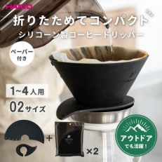 折りたたんでコンパクトに持ち運べるアウトドア用ドリッパー1~4人用サイズと専用ペーパー100枚セット