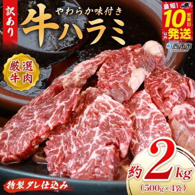 <やわらか味付き 牛ハラミ 2kg> 特製タレ漬け こうじ 訳あり 牛肉 肉 はらみ ハラミ