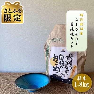 【さとふる限定】【令和7年産:精米】特別栽培米コシヒカリ(1.8kg)+【美濃焼】青輝貫入 小鉢2個