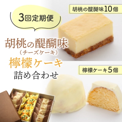 【3回定期便】御菓子処花岡 胡桃の醍醐味(チーズケーキ)と檸檬ケーキの詰め合わせ