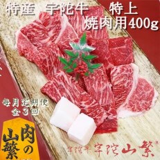 【毎月定期便】名産品 認定 宇陀牛(黒毛和牛) 特上焼肉 400g キャンプにオススメ全3回