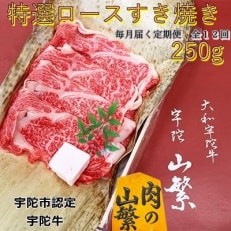 【毎月定期便】名産 宇陀牛 黒毛和牛 特選 ロース すき焼き スライス 250g 認定和牛肉全12回