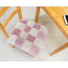 ムートン座布団 チェック柄 40㎝×40㎝ 毛長25mm ブラウン・ピンク・イエロー・ネイビー