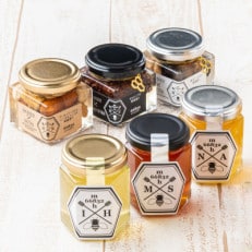 奈良産のはちみつに漬けたハニーナッツ・黒豆とくるみ・カカオニブの蜂蜜漬けと、はちみつ3種のセットです