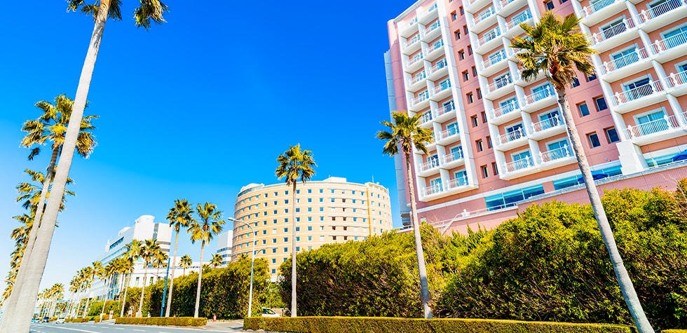 浦安市は、都心や空港からのアクセスが良く、舞浜の「アーバンリゾートゾーン」には、東京ディズニーリゾート®や国際級のホテルが立ち並び、ホテルブッフェや開放的な海沿いの景色などを楽しめ、連泊の拠点としてぴったりです。