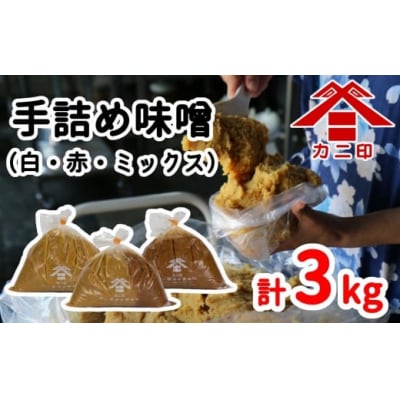 樽から生詰め!「カニ印手詰め味噌(白・赤)」計3kgセット