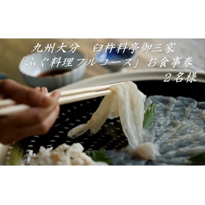 九州大分臼杵料亭御三家「ふぐ料理フルコース」お食事券(2名様)