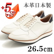 スニーカー 本革紐タイプ 5cmアップシークレットシューズ ホワイト 26.5cm No.801