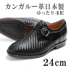 モンクベルト紳士靴 カンガルー革メッシュ ビジネスシューズ ブラック 24cm No.1275