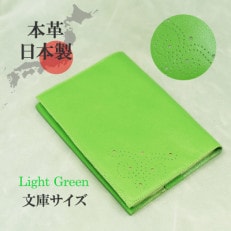 本革ブックカバー 文庫本サイズ ライトグリーン ソフトなレザー 日本製 A6サイズの手帳対応