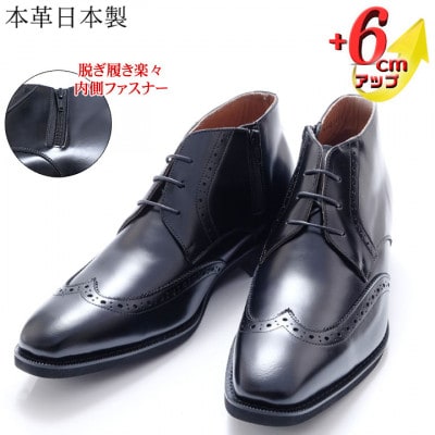 国産シークレットブーツ 内側ファスナーで紐を結んだまま脱ぎ履きOK 北嶋製靴のウイングチップ紳士靴