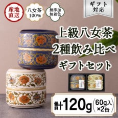 【ギフト対応】和モダンデザイン 上級茶入り茶缶 2種(上級茶60g×2種) 八女茶100%