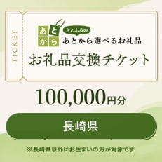 長崎県のあとから選べるお礼品【お礼品交換チケット100,000円分】が付与されます。付与されたお礼品交換チケットは長崎県が指定するお礼品と交換が可能です。