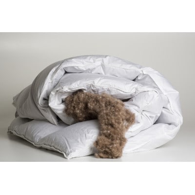 また、側生地には抗菌防臭加工と防ダニ加工を施しており、清潔さと安心を長く保てます。さらに羽毛の片寄りを防ぐ完全立体キルトを用い、熟練のスタッフが丁寧に仕立てているため、末永く快適にご愛用いただけます。