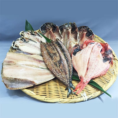 特大真あじ干物3枚、金目鯛干物1枚、エボ鯛干物2枚、サンマ干物2枚、ホッケ干物1枚
