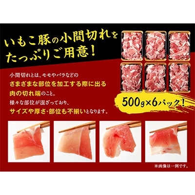 いもこ豚 小間切れ 3kg(500g×6パック)