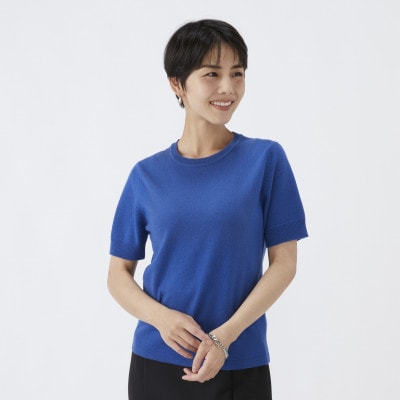 日本製 カシミヤ100% レディース クルーカーディガン ブルー Sサイズ 1着