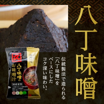 〈八丁味噌のお味噌汁〉伝統製法で造られる八丁味噌をベースにしたコク深い即席みそ汁です。国産野菜をふんだんに使用した具沢山の製品です。