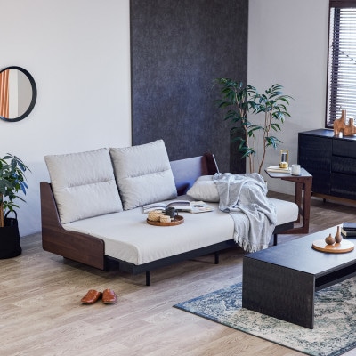 ソファベッド 3人掛け エスタート 200cm:ヴィンテージナチュラル×グレー【大川家具】