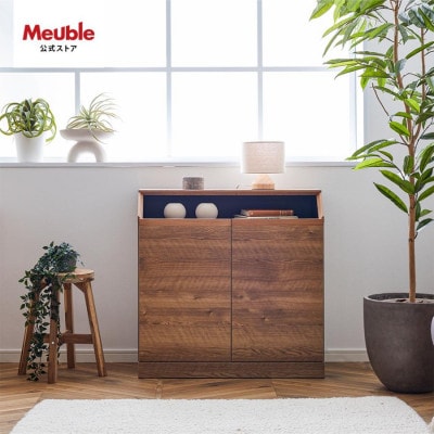 開き扉内にはモデムやルーターなどもしまえるよう配線孔を設けています。収納に困りがちな薬箱など、ちょっとした箱物も高さのある本も、効率的な収納が可能です。