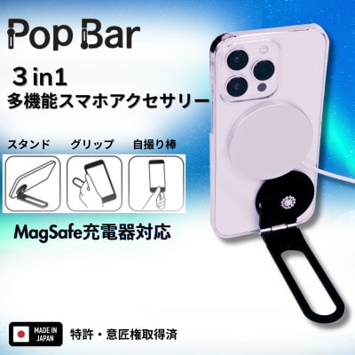 長崎県島原市からお届けするふるさと納税返礼品、「日本製多機能スマホスタンド Pop Bar 吟醸シルバー」