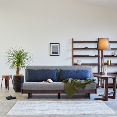 高さを35cmに抑え、床で過ごすスタイルでも快適に集える工夫を凝らしています。