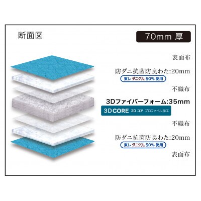 ●詰め物:防ダニ抗菌防臭わた(東レ ダニゲル(R)50%使用)、ポリエチレン樹脂100%「3D CORE」