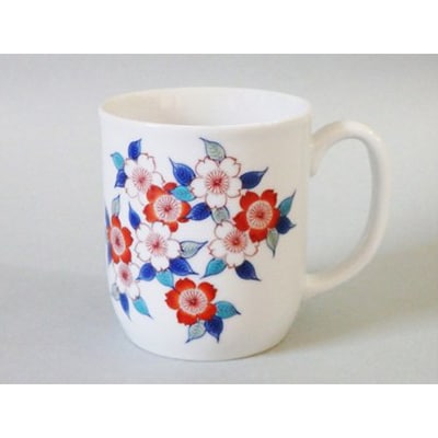 ・色鍋島桜文珈琲碗[1セット(皿:径14cm / カップ:径7cm 横9.5cm 高さ6.5cm)]